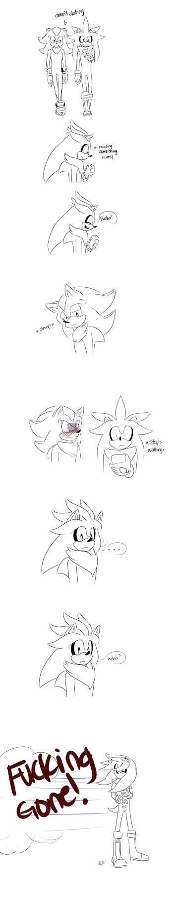 AH! That is part of my headcanon there! That Silver can get Shadow to do a love chirp. I never could figure out how to do this in a drawing. But to see you do it in a comic made me so happy! <3 Great job!
