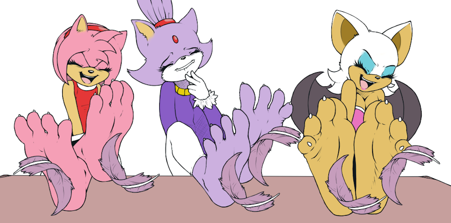 Here's a pic wtfeather made me on DA a while ago. It's Amy Rose, Rouge the Bat and Blaze the Cat having their feet tickled by feathers.