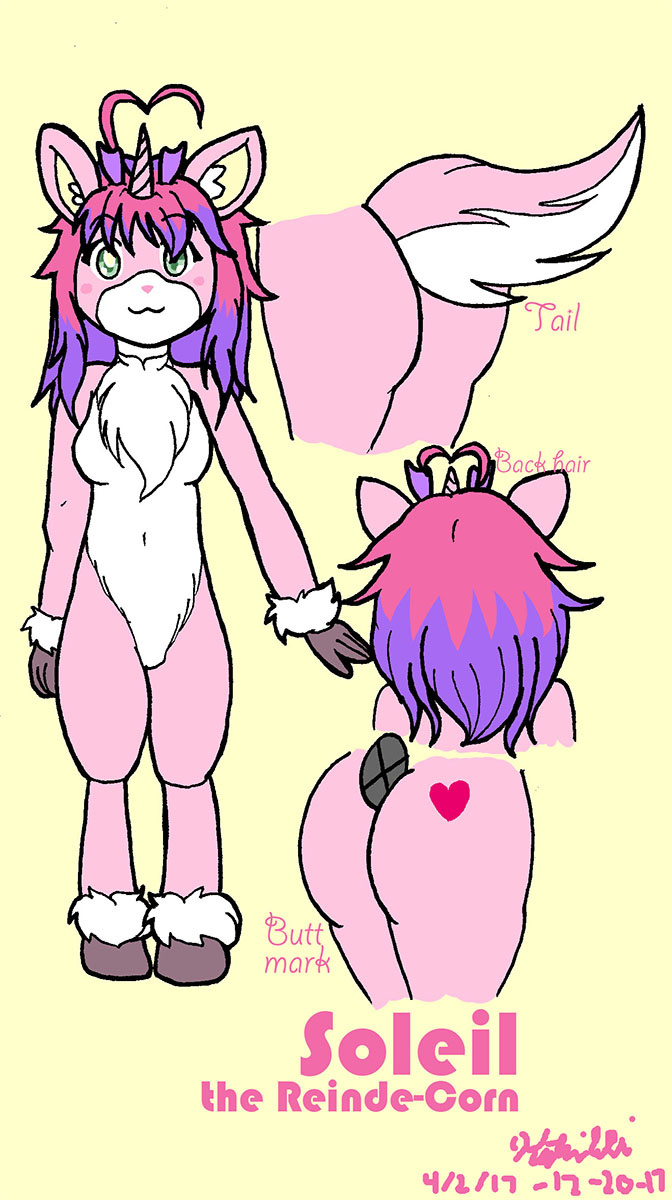 -Her ears and hair tuft had a tint of pink. If it was done in fursuit, the creator can use the pink fur fabric to make the effect.