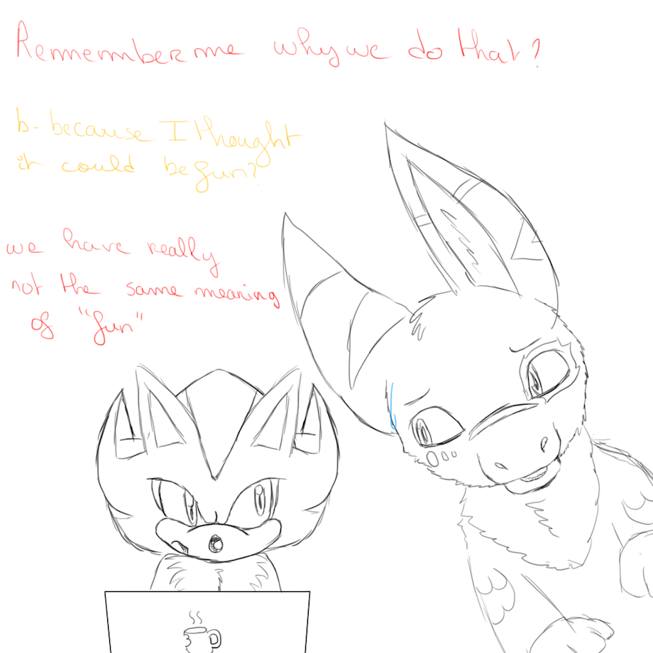 Also, on another note, I hope you see this as a good thing ^^ the way you sketched them here, it almost reminds of zomg's style! It's very cute, and works well! I hope you keep it up!
