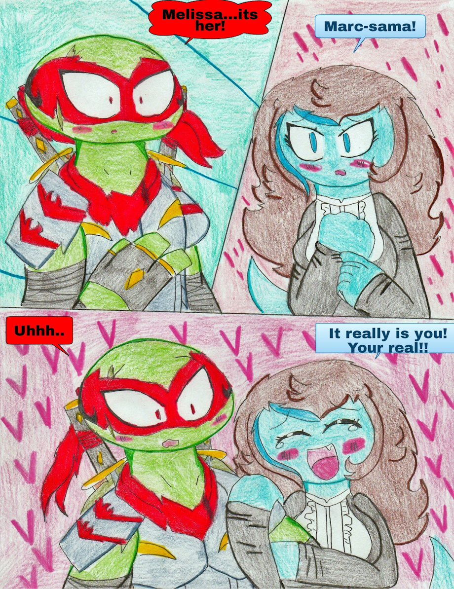 Before Marc and Melissa ever met it happened a few weeks after Marc met Nate, an alien known as a Raptorgon came to Earth to send in his armies to use Earth as a battle station against a Kranng named Xemos. At the cost of billion lives Marc tries to stop him no matter what, later another alien came to Earth to stop the Raptorgon, a salamandrian name Mirasaa'' aka Melissa. When Marc was on the ground Melissa came to stop him but she was not a skilled fighter and when the Raptorgon was about to kill her Marc came in and saved her. She couldn't make out what saved or who this person was but all she can remember was the backside and his name.