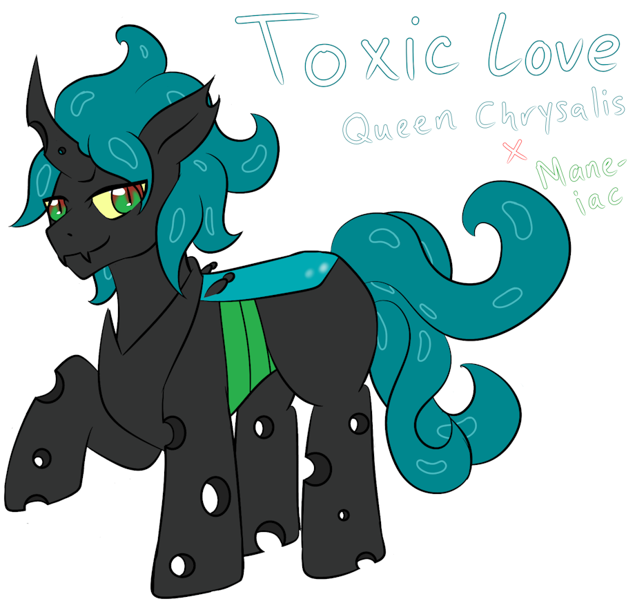 Bio: He was born from his Queen mother, like all the other changelings though he is one of the rare male 'queens'. Since he is male, his mother is still capable of giving birth to changelings. His other mother, Mane-iac, was brought to Equestria from a magic comic book, or so he was told. Toxic rarely spent anytime in the hive, choosing instead to travel to Equestria and play pranks on ponies. IT wasn't that he disliked his home, but he hated that he couldn't save the Albino's that were being more much more often than usual. Through his pranks, he would meet Sirius, who would be his best friend and first love for years to come.