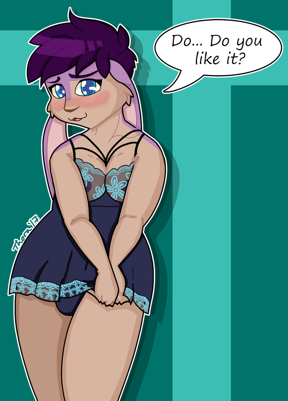 Been having a bit of a rough week lately, so I thought I would draw some art to try and cheer myself up. Thora with a bit of a new hairdo and some cute lingerie.