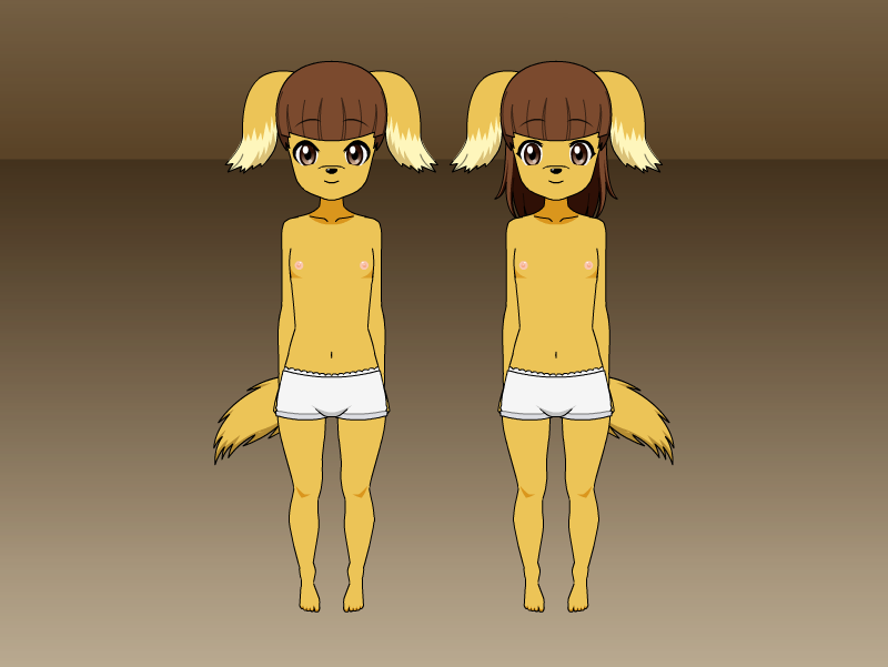 's fursonas, Nate and Natalie, in their cub and adult forms, wearing diapers and underwear, respectively.