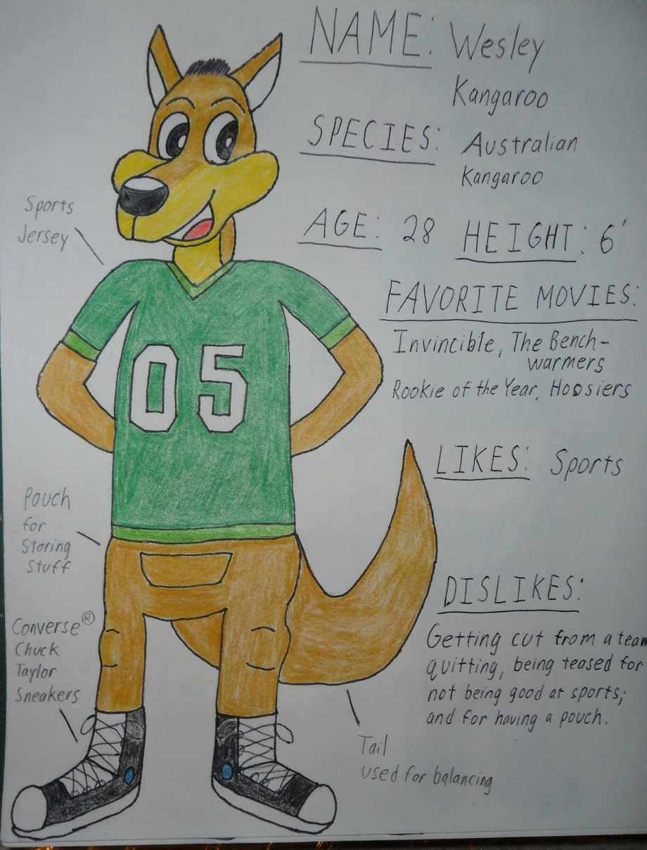 Background: Born in Australia, but raised in New Jersey. Wesley always had an interest in sports.(baseball, football, basketball, soccer, hockey, etc.) He's gotta a very positive attitude, but a lack of coordination. He's even tried out for every major sports team in Philadelphia; but didn't make the cut. He met the gang while he was in high school. Wesley was like the only jock who didn't go around bullying people. Mainly because the rest of the jocks picked on him for being bad at sports.