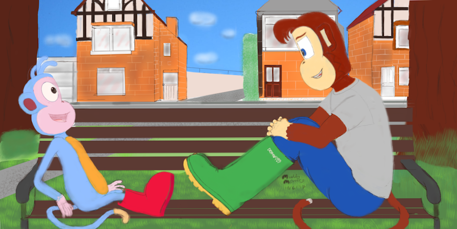 Dear God this took a long time; hope it was worth the wait xD! Anyways, this is my latest drawing; one I was very keen to draw after coming up with the idea, as it's quite a personal drawing to me. See, Boots the Monkey (the sidekick to Dora The Explorer) was the single character I can pinpoint as igniting my interest in anthropomorphic animals, but more to the point, he cemented two key themes that would come to define my style of characters to this day; first, that monkeys lent themselves well to the style (in my eyes), but more importantly, that characters in any form of boots, though mostly Wellies, is something I was very keen on. Connor the Monkey takes some inspiration from him in this sense, and so I figured it would be a good idea to come full circle, and put (by far) the most amount of hours and effort into a drawing that shows where I began, and where I am now.