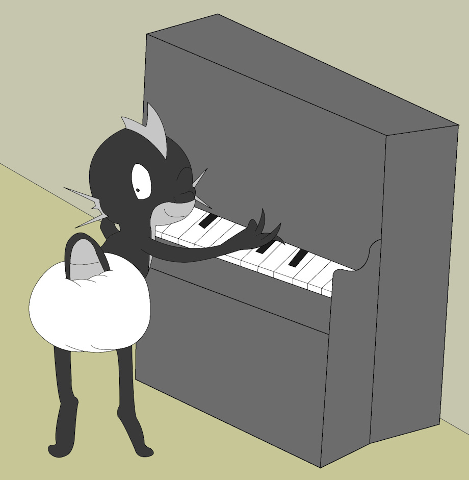 Heavily inspired by a picture drawn by Grimminhiscrib, I brought back 1930’s Leon. In this one, He’s playing his piano in front of a huge audience while shaking his padded posterior around.