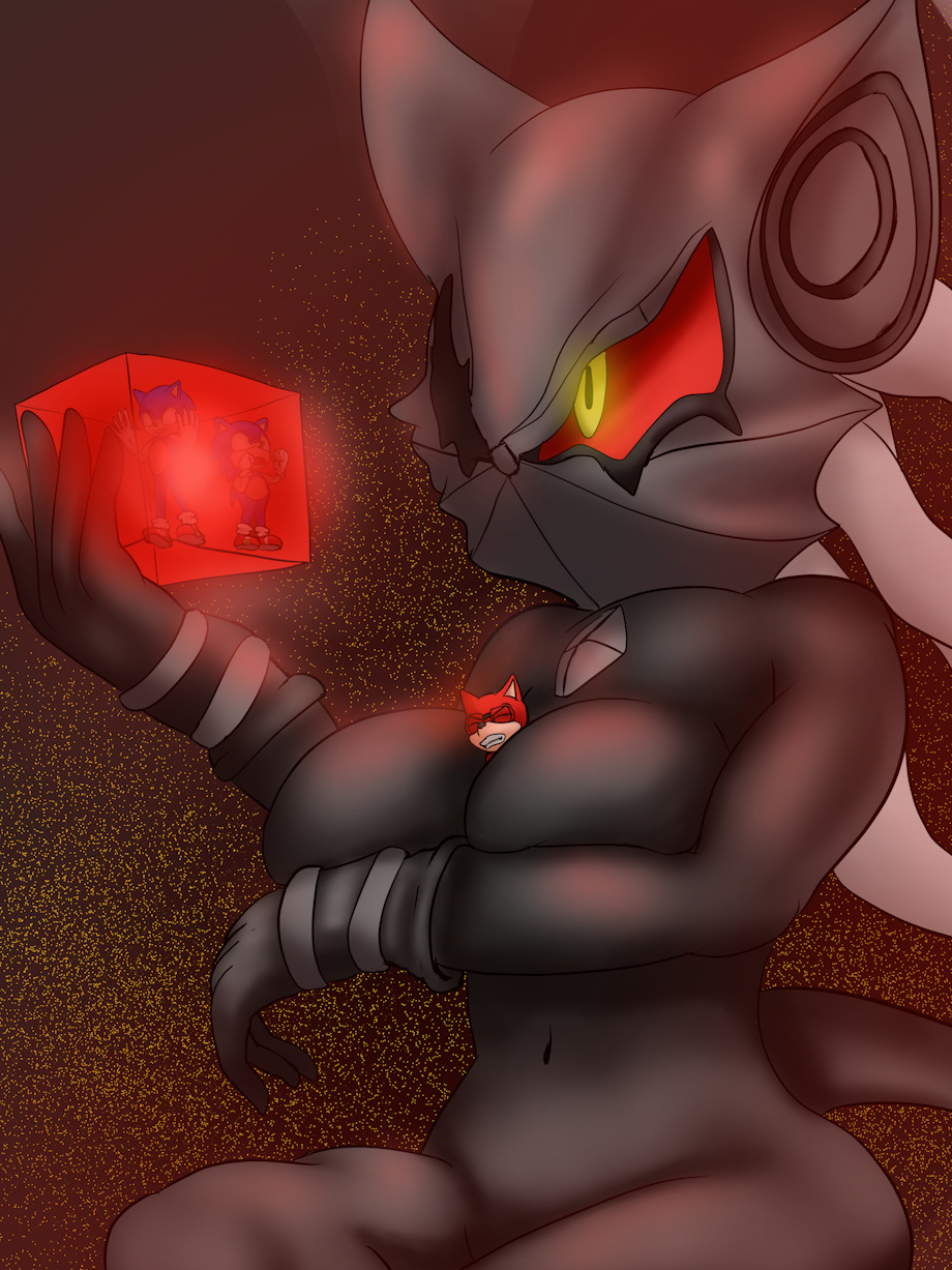 (Sonic knocking on the red clue) Sonic: Infinite, Let...us...out?! NOW! (Female Infinite looking