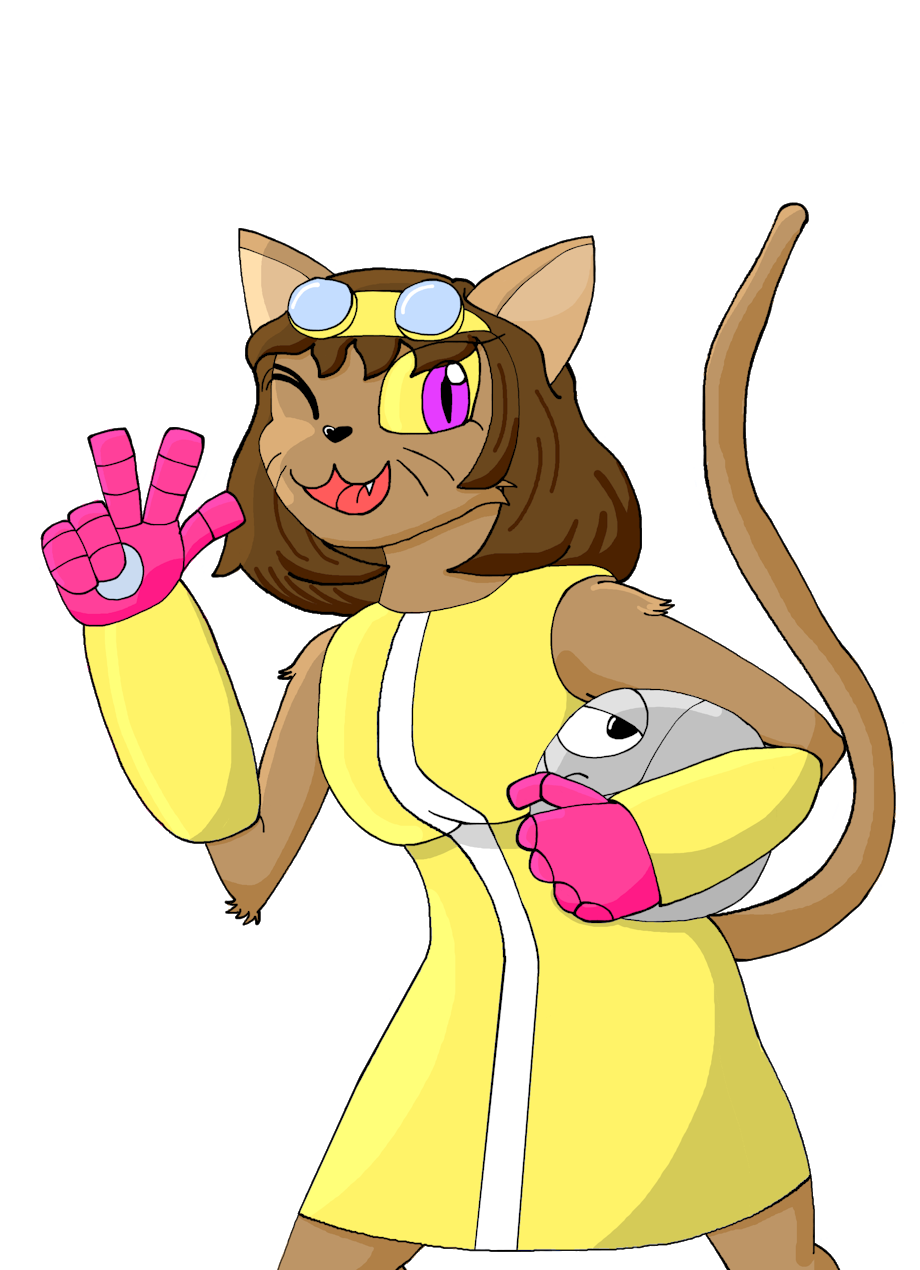 Two characters from a show called Gameoverse that Ross of Game Grumps is working on. It's a video game based series following catgirl Kit, the robot Kaboodle, Flapper the dolphin, and Gobbles the dinosaur as they're fighting the forces of evil to save the world and gets into hijinxes.