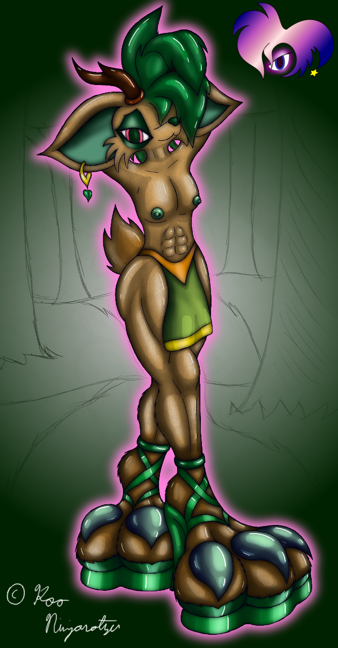 Note: Yes I drew him with nipples. This was something brought up to me that I never really thought much about before, but yes, male Starmaninjians do have nipples. They're usually not exposed, but I never really thought much about drawing males with nipples. I figured it's kind of a "Why not?" case so I'll probably start drawing shirtless males with them for the sake of consistency, though in reality, their nipples are only really exposed if they're aroused, just as female nipples grow when aroused. Clover's always aroused though. Male breasts can produce milk just like female breasts, but far less for very obvious reasons.