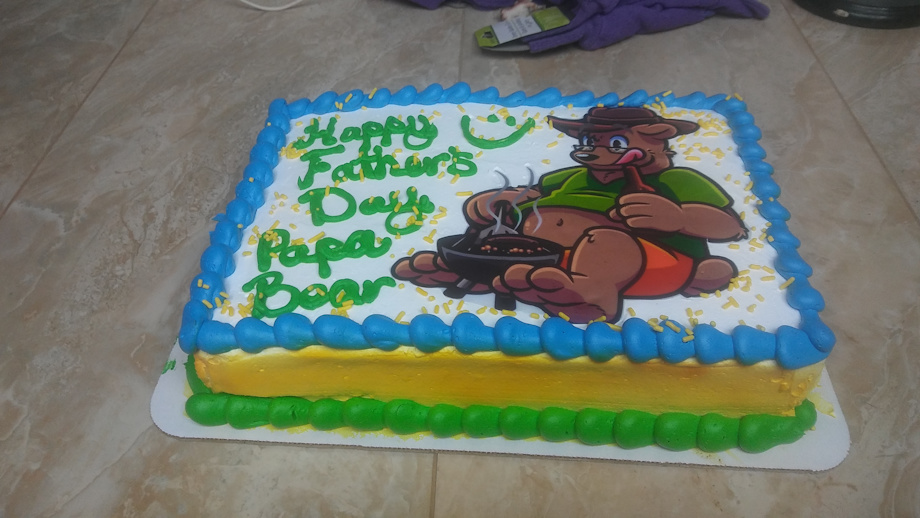 So my sister hit me up Monday about an idea to put a picture on a cake for our dad for Father's Day, and this was the result of said idea. :3 We made it happen, thanks to a friend of course, but still!