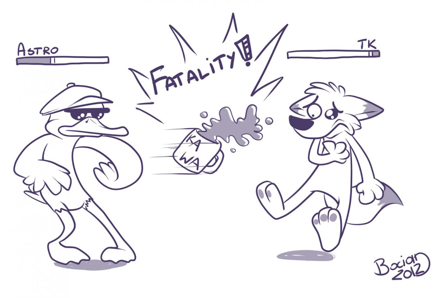 Oh yeah....he seems to have lost his eye piece and....I don't maybe the other explosion that launched us here frizzed his headfur off.