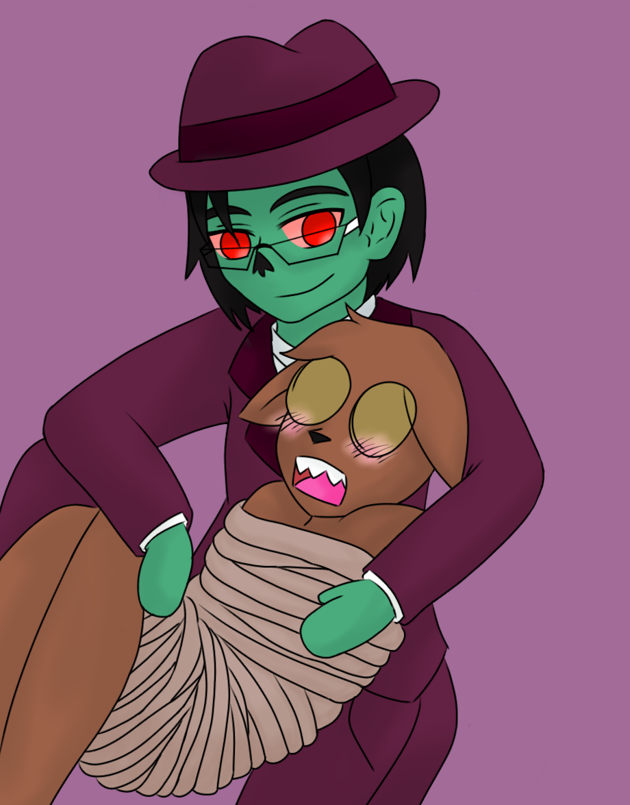 My second and probably last Zombie Jamboree picture. While I ship these tow nameless monsters, I have other pictures to finish and I don't feel like drawing them anymore. Still, they are super cute despite greeny wanting to eat poor wolfie's brains.