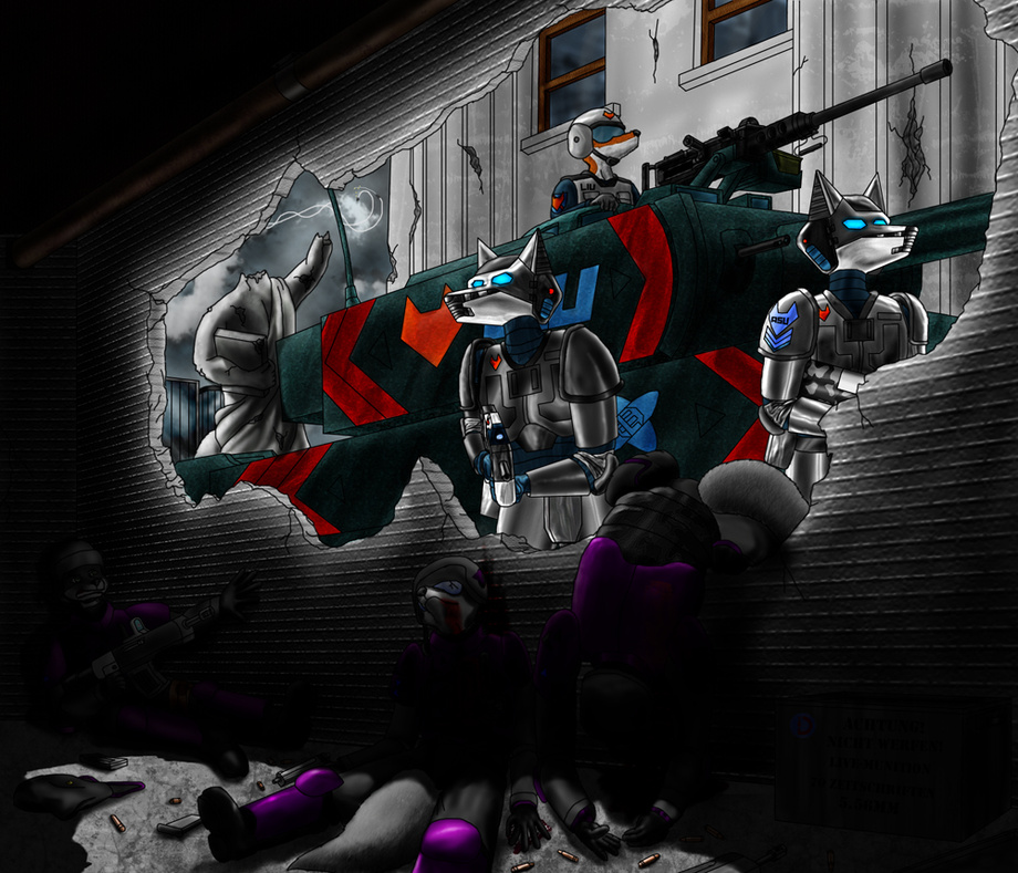 I did this based on his future war story idea called The New Certitude, which I got interested in his ideas/units/gear/weapons... reminded me of Battlefield 2142.... but with foxes.
