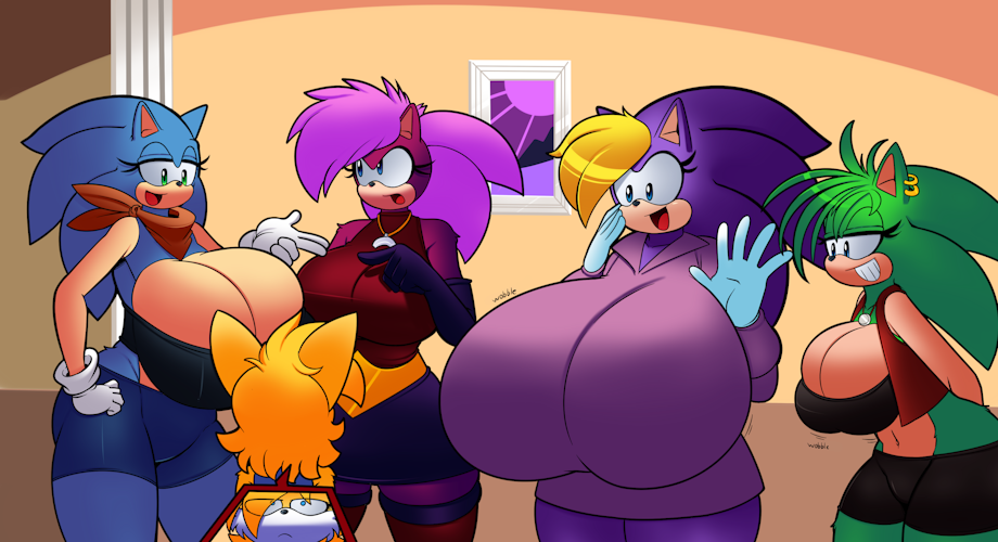 Remember when sonic brought up her size and how it compares to her mom? Well now we, along with tails, can see she was not joking. we even get to see her sisters, Manic and Sonia, who while not on the super scale of knocker size but are no slouches.