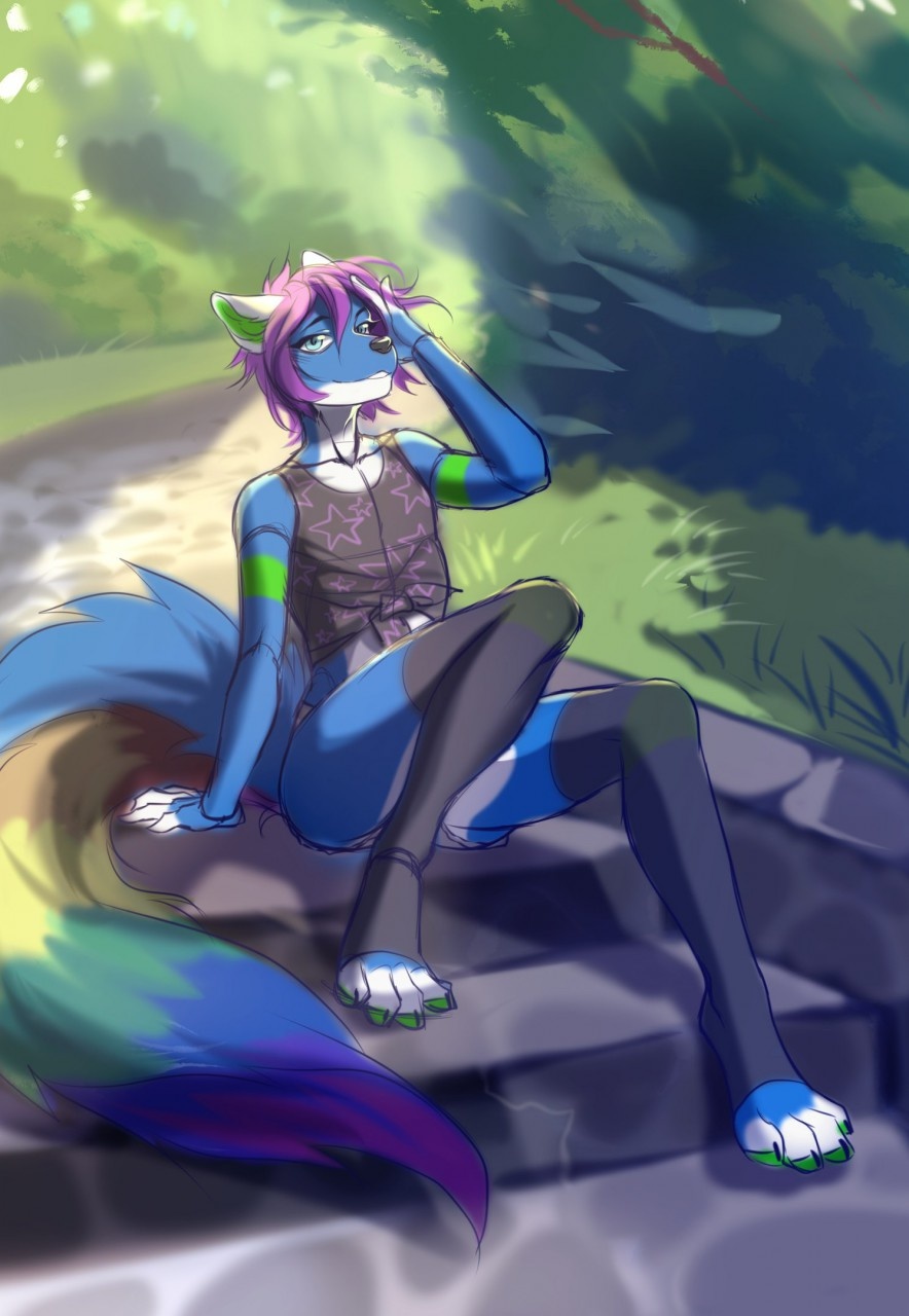 Icarus after a morning run through the park, looks like he needs a breather for a little, must be a hot day!
