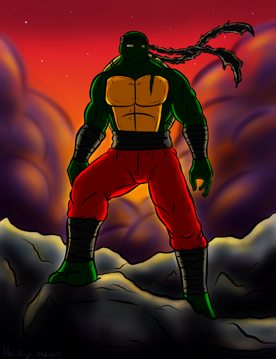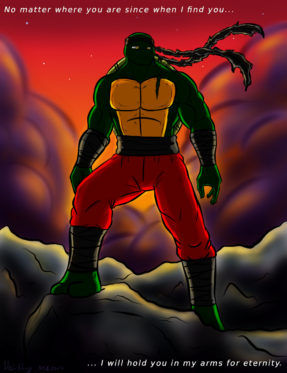Shredder Raph is Sherene’s own AU and in this art Raph has gone to Japanese mountains to look for Leo since he longs his love so much. He won’t quit until Leo is in his arms <3