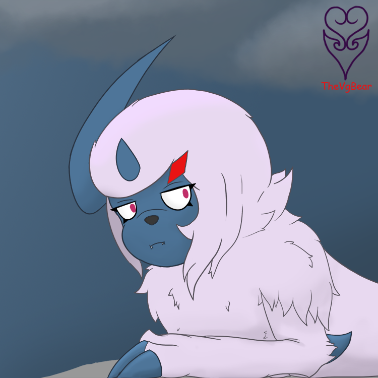 A very simple drawing of my pokemon Absol Violet, tried to draw a funny face, she was contemplating the night, and this is a scene when someone tried to spoke her.