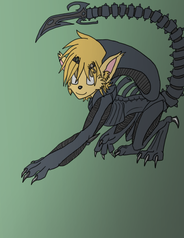 "Rawr! Another cosplay from that awesome Alien movie. Or is it Aliens...doesn't matter! Just me crawling around, ready to eat your face and destroy you! *Giggles* Looky at the hairclips. Facehuggers! Even though they're hugging my hair this time!"