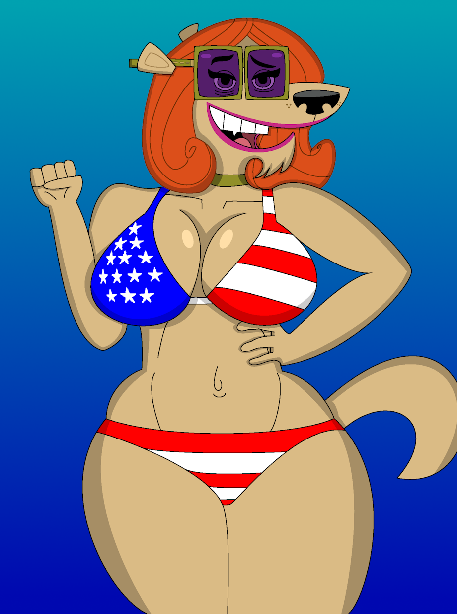 Counting Cougar is wearing a Stars and Stripes Bikini as she is counting down to the fireworks for Petropolis Fourth of July Beach Extravaganza.