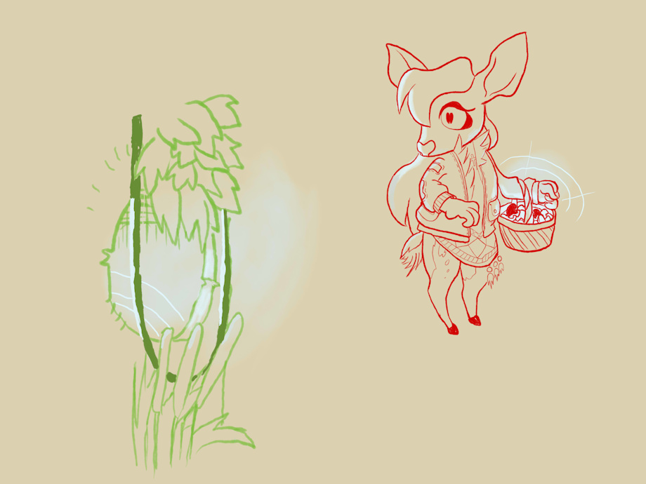 This deer girl is looking for glowing mushrooms, infact she's from an adoreable little villa where the people do that. Because the flow is easy to replicate and the mushrooms could sprout anywhere, these deer are very easy to lure.