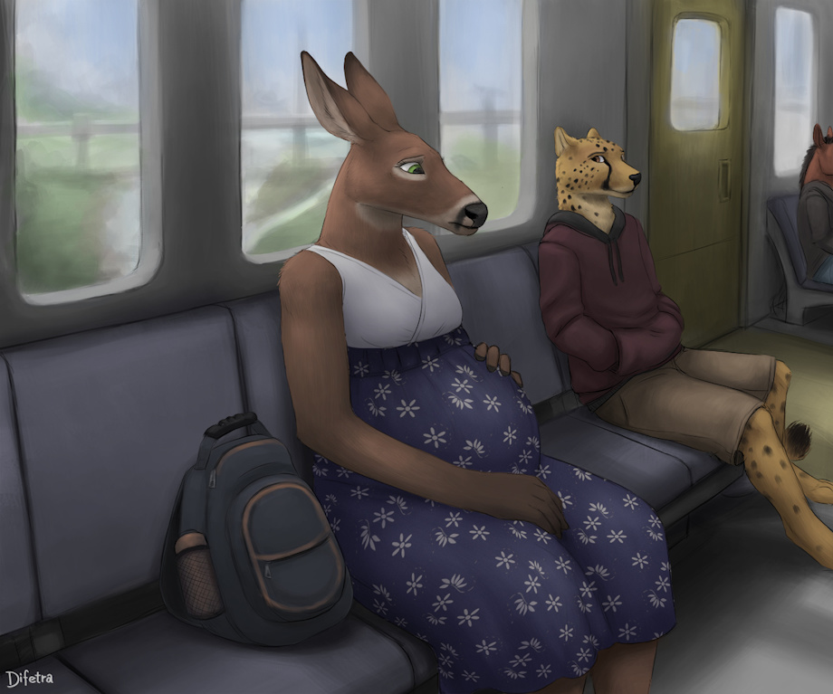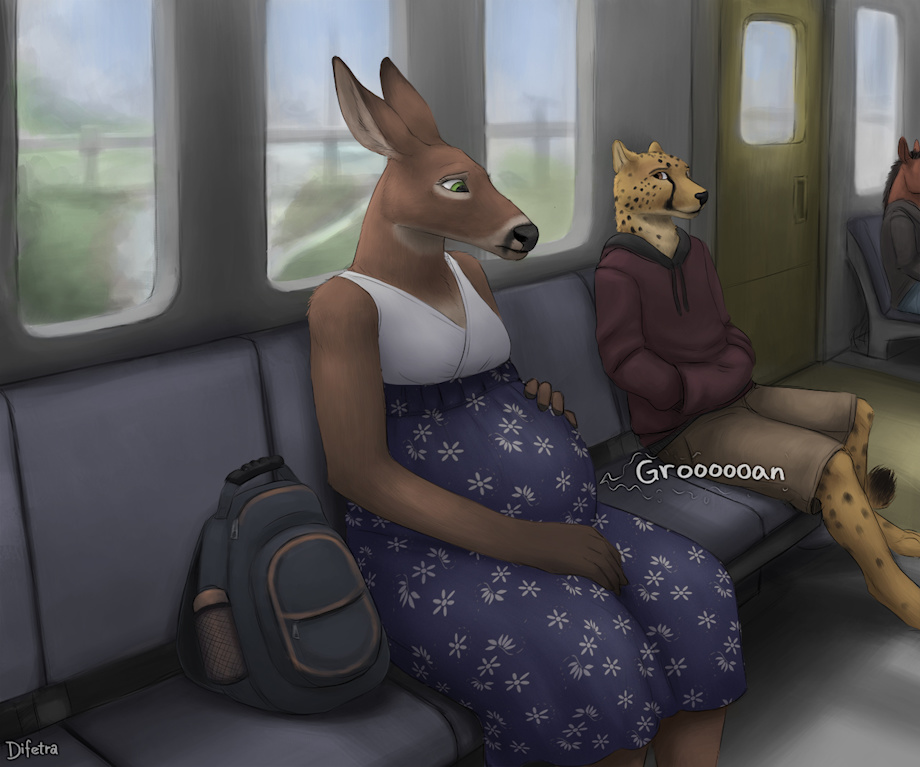 It was time to head home. Orion (*gasp* he has a name now) had explored crossdressing a bit in private and knowing well what he looked like with a bloated belly thought he might make a passable pregnant doe. It seemed he had people fooled, at least none one said anything. That is until a series of low rumbles low in his gut drew confused looks from the surrounding passengers. The activity from getting ready and traveling must have had things moving along again.