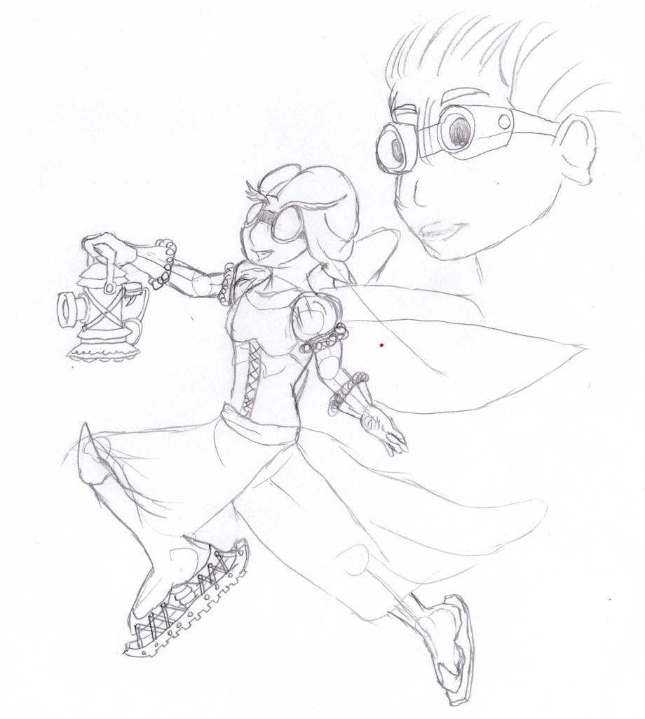 She's my first one. She has no name yet. Her concept is based on the ten-lined june beetle (I did her antennae like eyebrows) and a giant mecha beetle with gatling cannons where the maxillary palps ought to be.