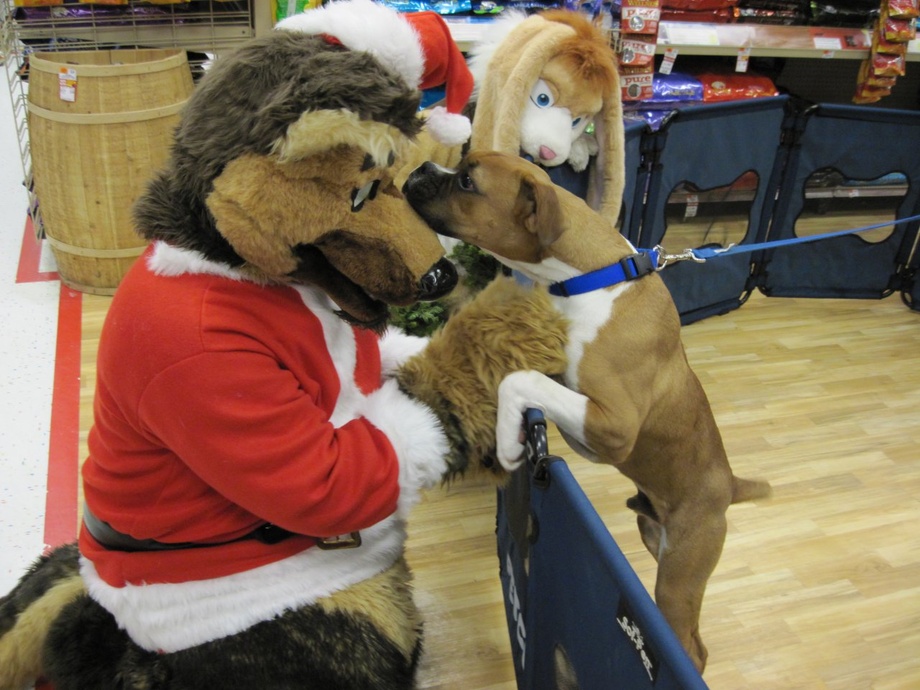 Just a photo from our Petco (where I work) visit in December. Turbo, one of our 'regulars' for puppy playtime, was confused to smell my scent, but see this giant german shepherd dog. He gave me kisses anyway. <3