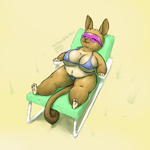 Drawn on an OC session with cngsoft. This picture is absolutely incompatible with my characters' design. They're always pantless, so a bikini is actually more clothing than they usually wear. They'd just sunbathe naked.