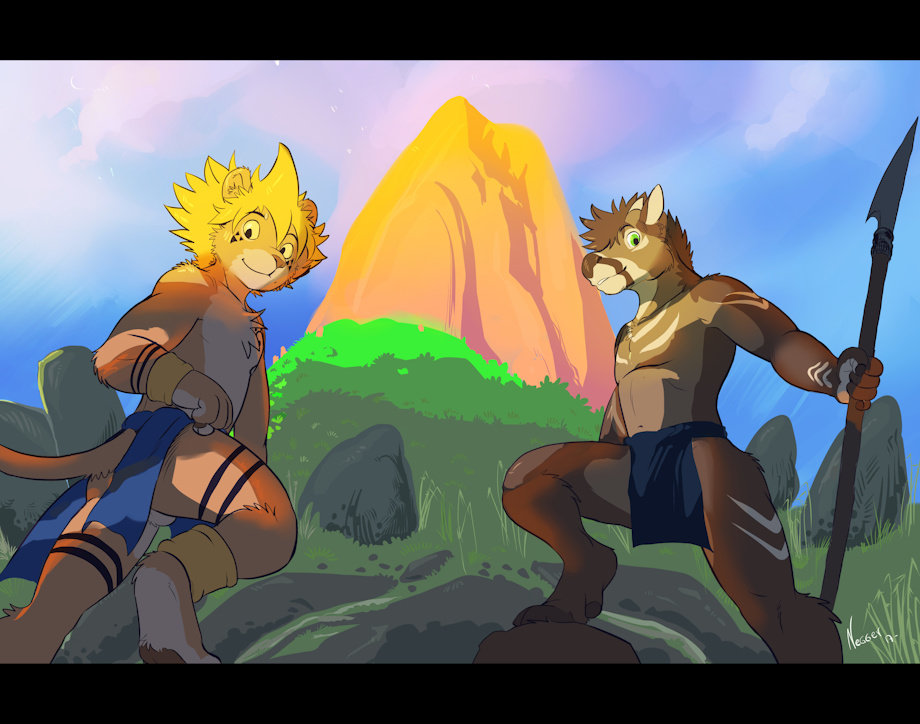 Franko and Rylo climbing the mountain to see what adventures wait at the peak!