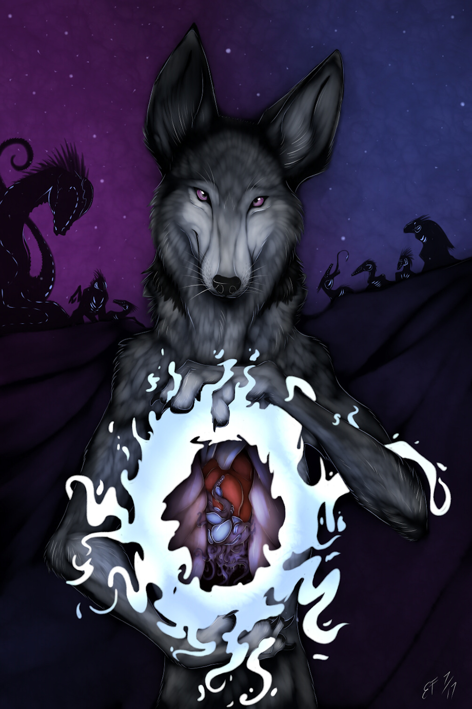 I really love that facial expression with the shadowed critters and night sky in the background. <3