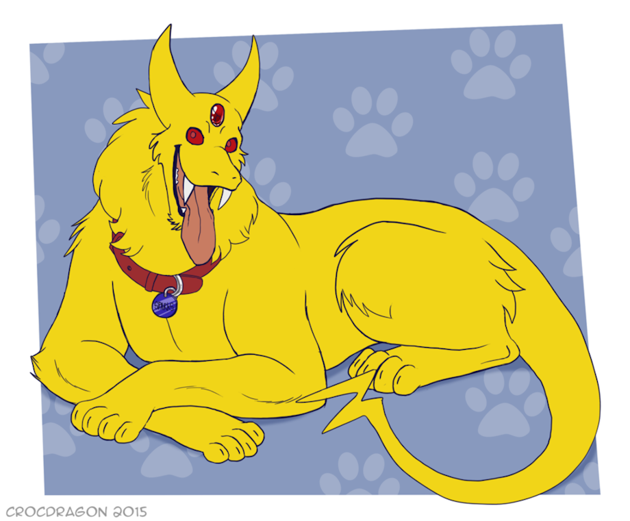 Usually seen with a dog collar and dog tag with "R" on it. He thinks it's stylish and also makes him look cool.
