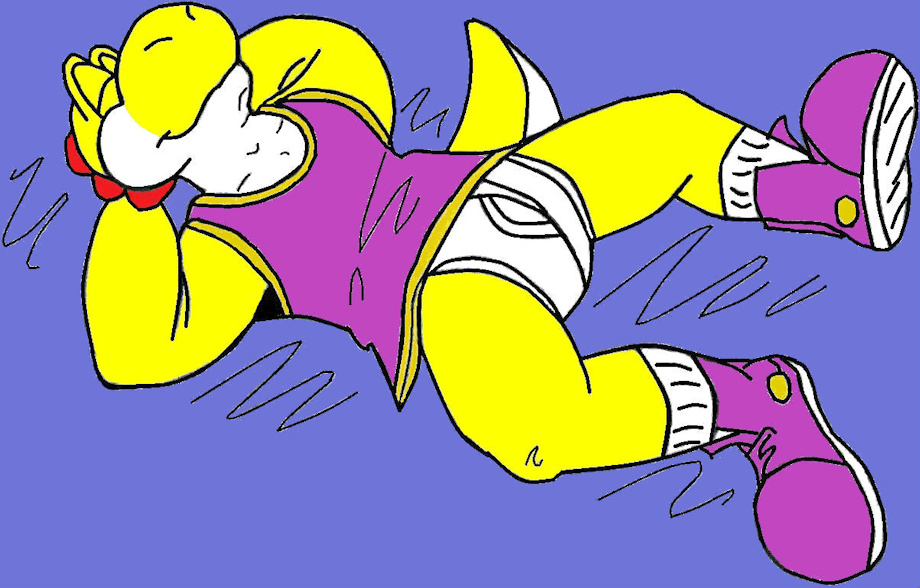 Showtime lounging around in his undies. Silly yoshi should take off his jersey and shoes for more comfort.