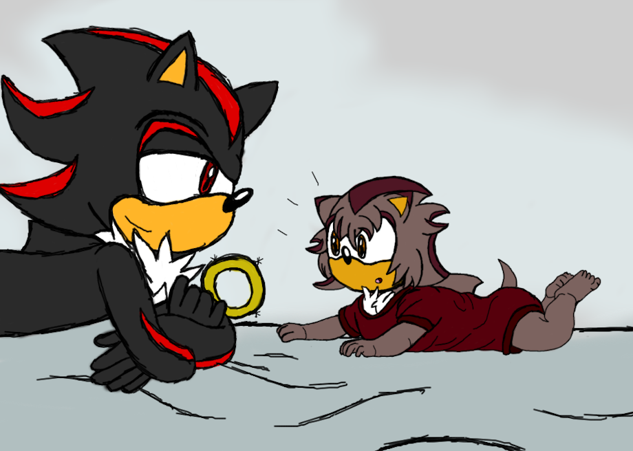 Originally I wanted to make Riley look up at Shadow but the damn eyes wouldn't cooperate so I instead added one of Shadow's inhibator rings, making Riley distracted by teh shiny~