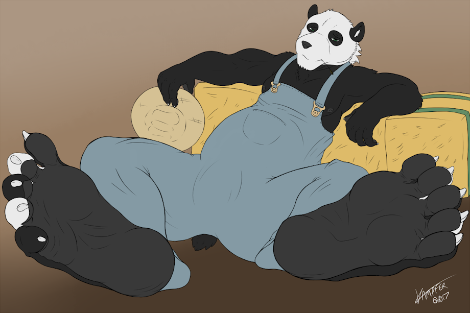 Very sexy panda with very sexy feet :3 <3. I also love his bulge :3.