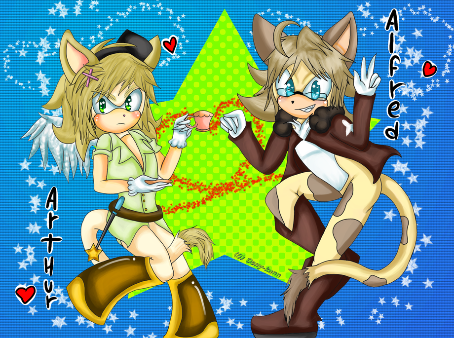 Estos son "HETASONIC" son personajes de "hetalia" al estilo Sonic the hedgehog, es que esta pareja me enamoró por completo Alfred:heart:Arthur los adoro >w<