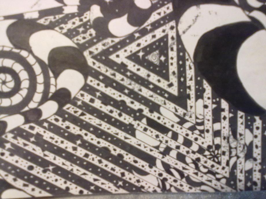 The first one is A3 sized, mostly drawn with 0.1mm art felt-tip, + some bigger for the big black areas.. Used rulers & Compass (drafting) for the precision...