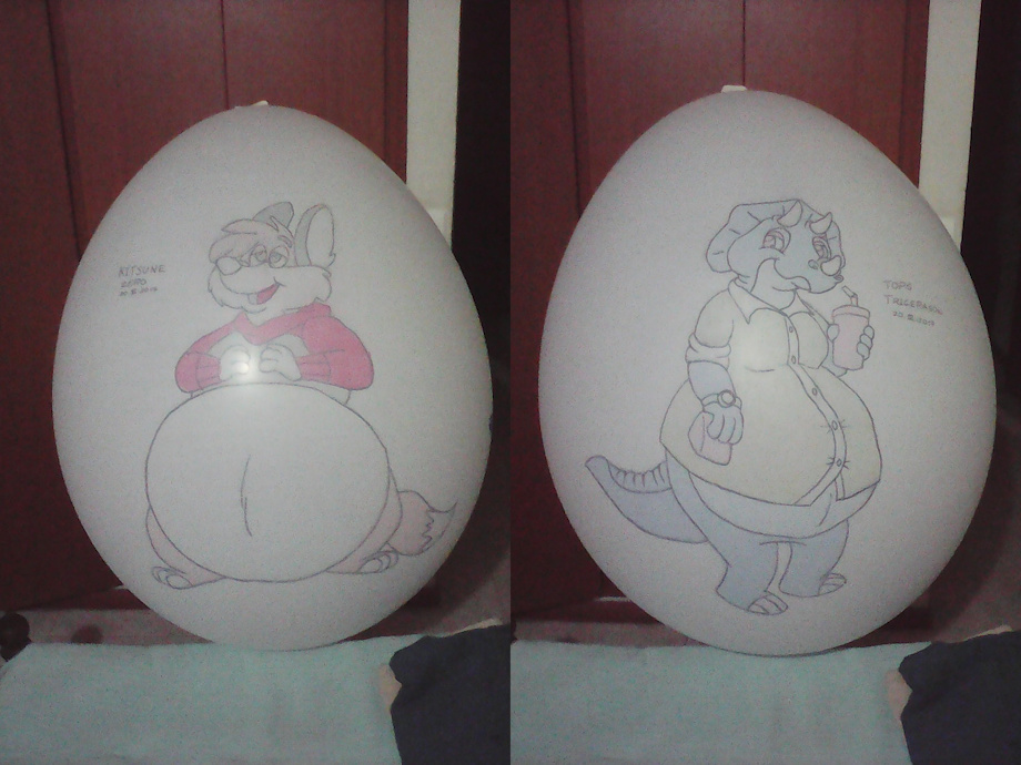 Kitsune Zero and Tops Tricerason, both drawn on a giant China 36" white balloon