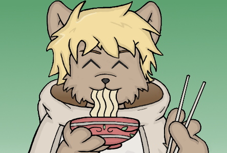 Bern's enjoying some noodles, as it occurred to me I hadn't made a proper picture of him yet. This one still isn't, but whatever. I'll have to draw him and Neige together some time. Gave him a weird ninja hood garb instead of his usual scarf. Not sure why, but I blame the noodles. Those delicious, succulent noodles...