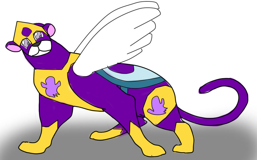 Pankyrio changes form to battle mode, changes shape to help Ghost Panther, so that Pankyrio can change shape when Ghost Panther., Makes a large circle, so it draws big and has armor with purple amethyst symbols