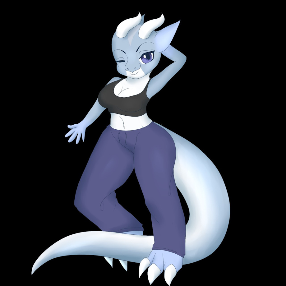 When in a more modern setting, Iraya often likes to ditch her mages robes for something more simplistic and easy to toss on when lazing around her house. Be it just a bra or simple tank-top, she'll avoid full-on shirts when looking to accompany her usual sweatpants!