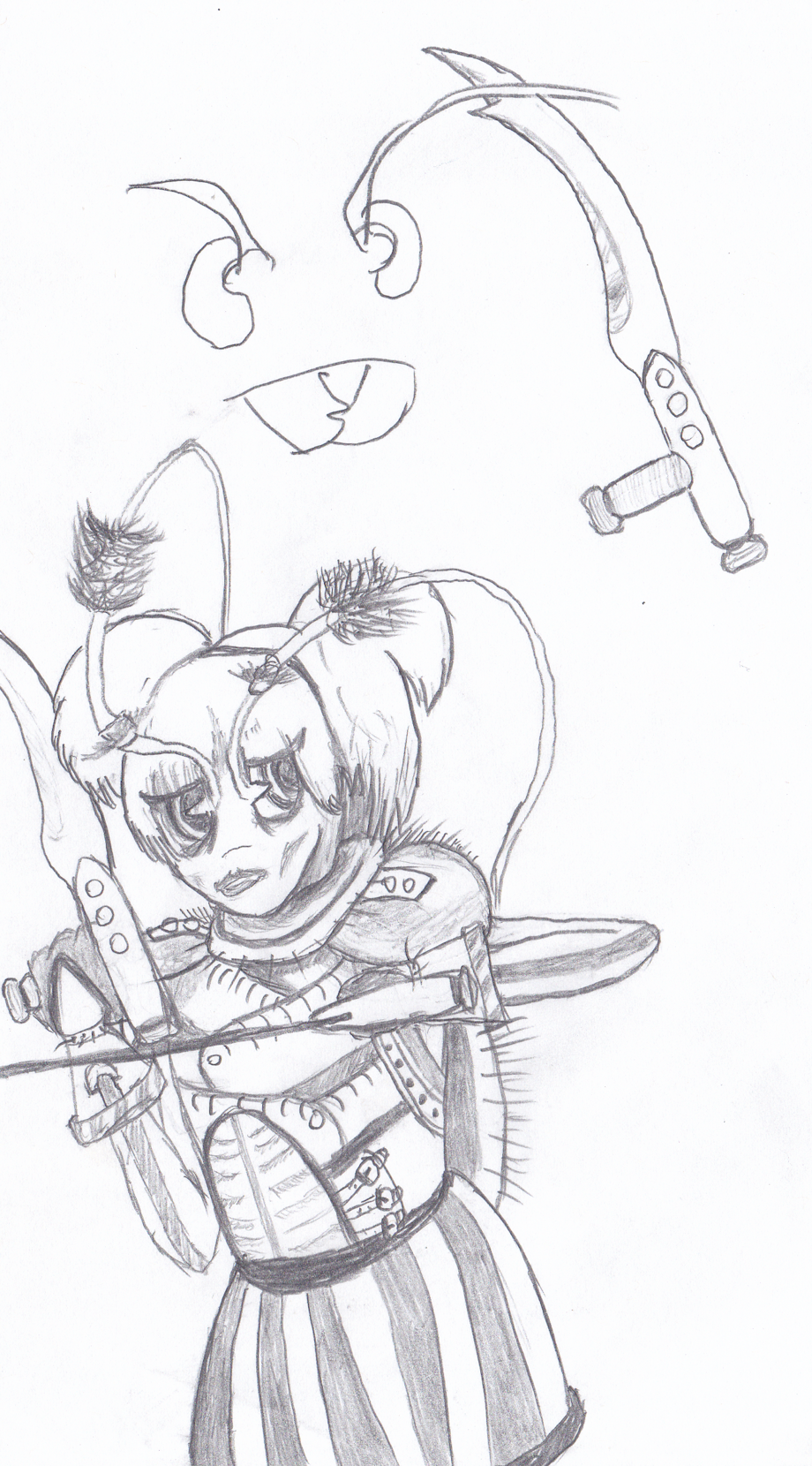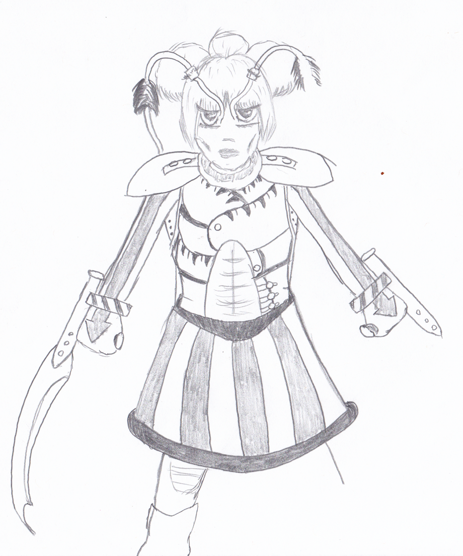 She's modeled on a tuft bearing longhorn beetle, Aristobia sp (probably horridula) I saw it and was like MUST DRAW.