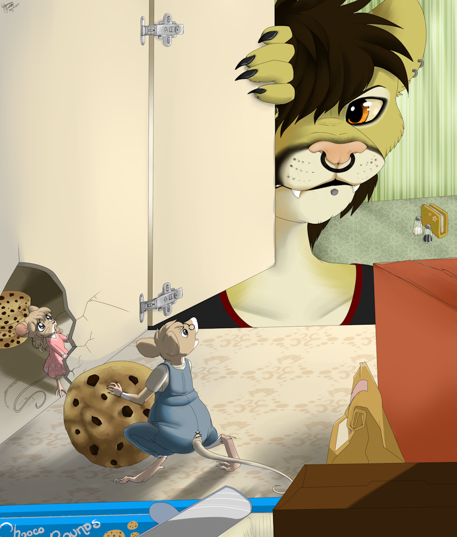 A young puma, don't have a name for him yet, catches a pair of mice stealing his favorite cookies! What will he do?!