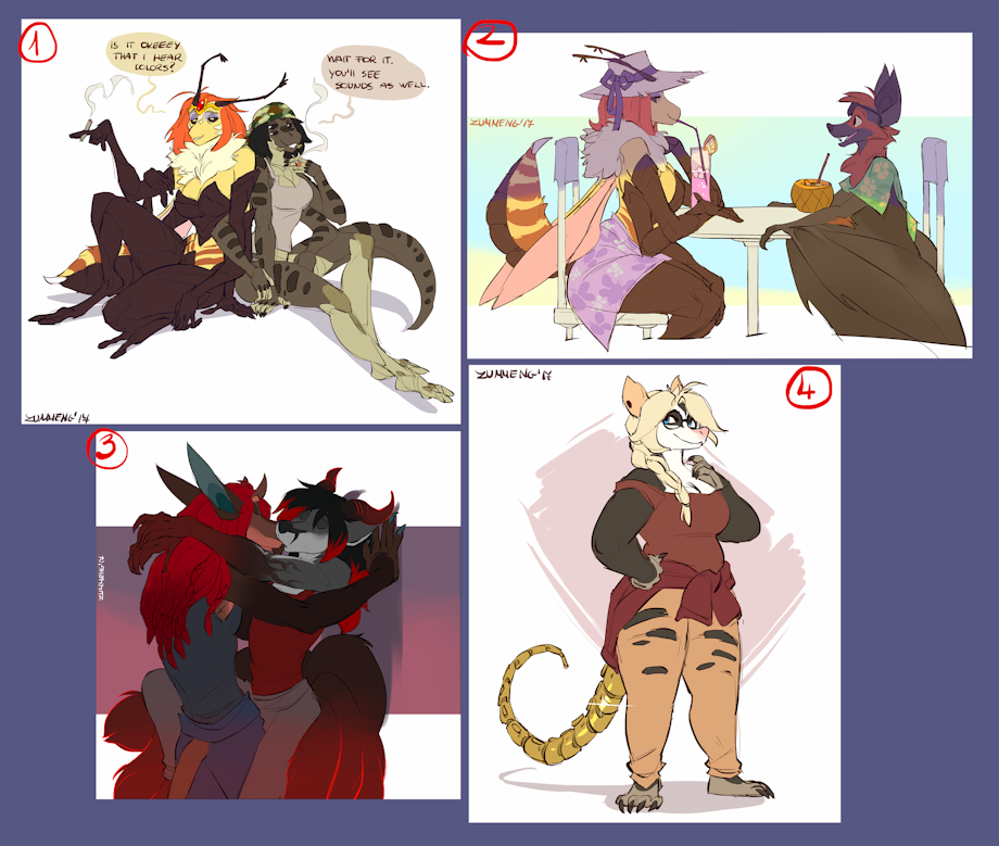 On this stream my bee character, Alma was highligted in two pieces. I very rarely used her in general so far. I designed her to have fun with in various topics, so I won’t mind if you guys ask to put her in your commissions. NSFW is okay too. The next stream will be NSFW anyway. So if you don’t have any idea of your sketch commission, or just needs a plus character, then usually I can provide my own character(s), depending which one is fitting.