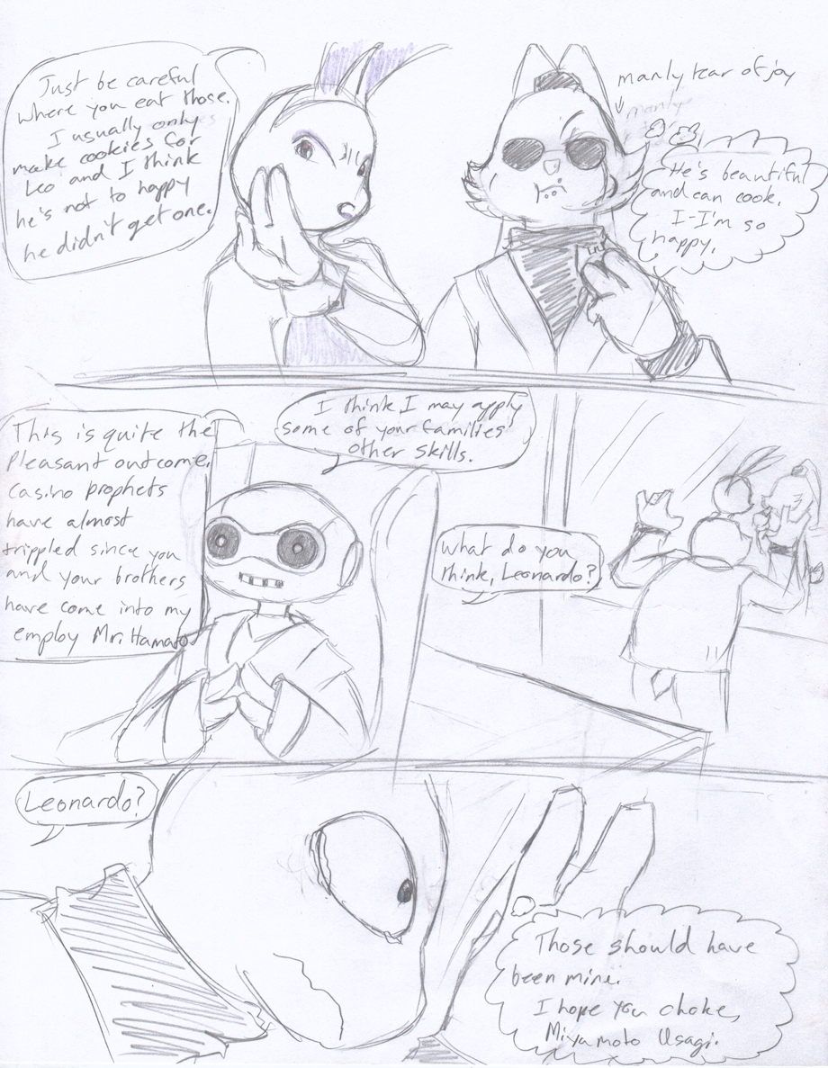 Donnie thanks Usagi for his flowers with a sweet treat.
