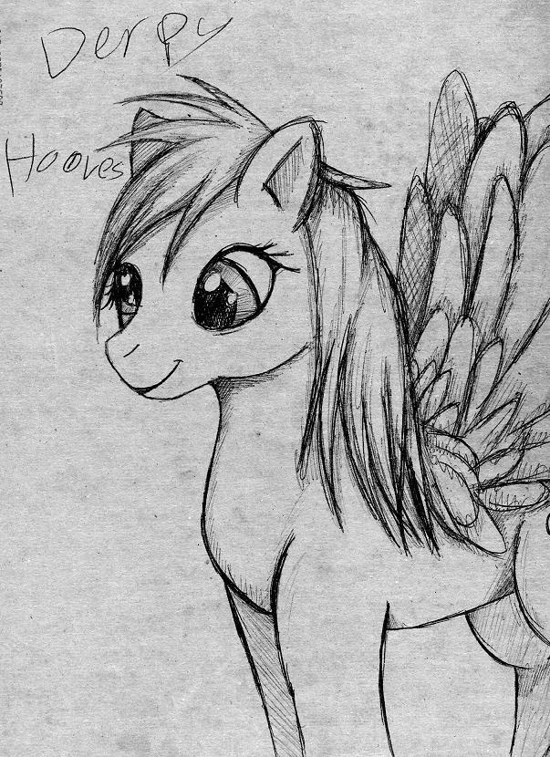 I was bored and started sketching with a pen on the back of my sketchbook....somehow or another it turned into Derpy Hooves/Ditzy Doo