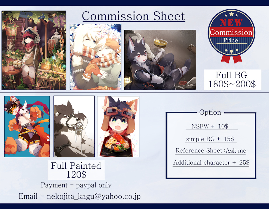 Hey guys! I'm finally done updating my commission sheet with revised prices! Thank you to those who helped me adjust the prices and gave me advice! Since I'd like to see how things would go, I'll have no limits on slots for now. I might set some in the future though.