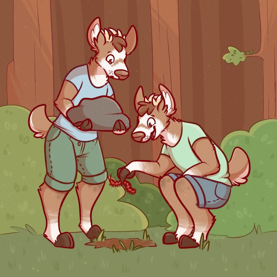 Beautiful little piece of my young deer twins Dieter and Kristian, doin' what boys do - frolicking in the woods and looking under rocks to see what weird creepy-crawlies they can find!