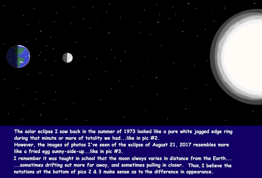 The appearance of a solar total eclipse in 1973 differed in appearance from the eclipse that took place on August 21st, 2017.