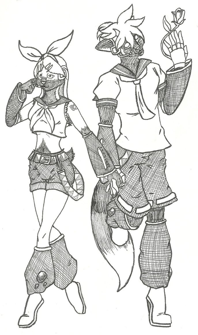 Kadmiel and Soren have dressed up like the sibling vocaloids Rin and Len Kagamine.